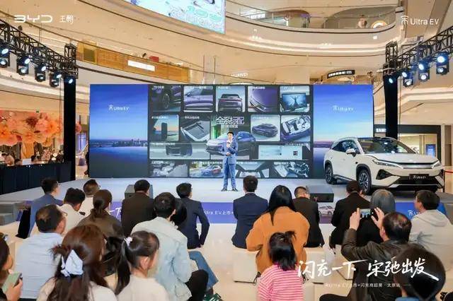 4月11-12日,“闪充一下 宋弛出发——宋Ultra EV上市&闪充商超展”在太原吾悦广场举行。众多省内汽车主流媒体、太原首批交付车主与众多现场消费者齐聚一堂,共同见证比亚迪王朝网重磅纯电车型宋Ultra EV正式登陆太原,在兼具晋风宋韵与科技感的沉浸式氛围中,开启一场高效便捷的新能源闪充出行体验之旅。